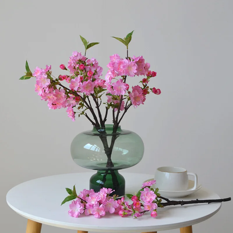 HomeCherry Blossom Artificial Flower Silk Peach Blossoms Plum Branch Wedding Home Floral Arrangement Ornament Table Vase Decor Zapaiflowers