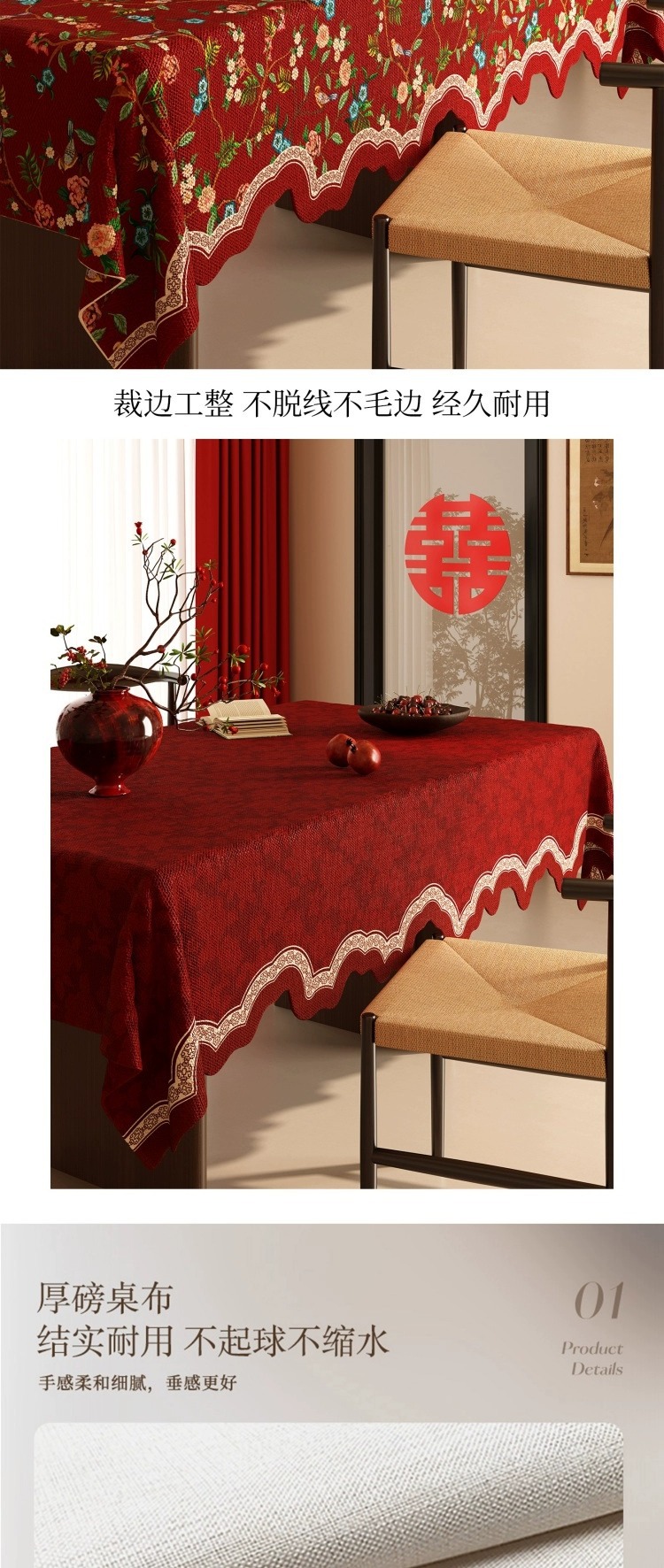 Table Cloth Style Wedding Festive Dining Table Tablecloth Wedding Room Atmosphere Water-proof Oil-proof Tablecloth Living Room Coffee Table Decorative Cover Cloth